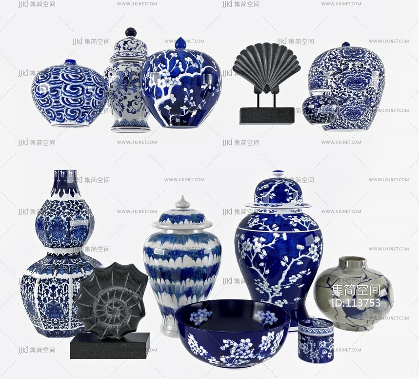新中式青花瓷摆件 3d模型下载 [模型ID:113753]
