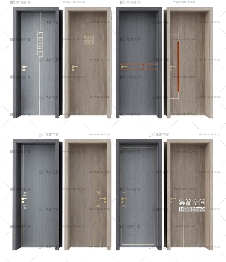 新中式平开木门 3d模型下载 [模型ID:113770]