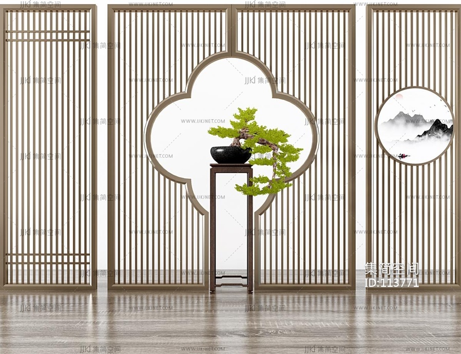 新中式屏风隔断 3d模型下载 [模型ID:113771]