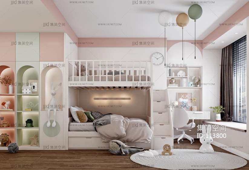 北欧上下铺儿童房 3d模型下载 [模型ID:113800]