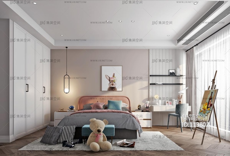 07-现代儿童房,儿童床学习桌-3d模型下载