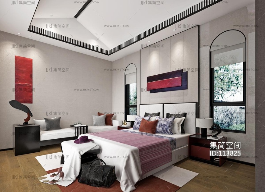 新中式卧室 3d模型下载 [模型ID:113825]