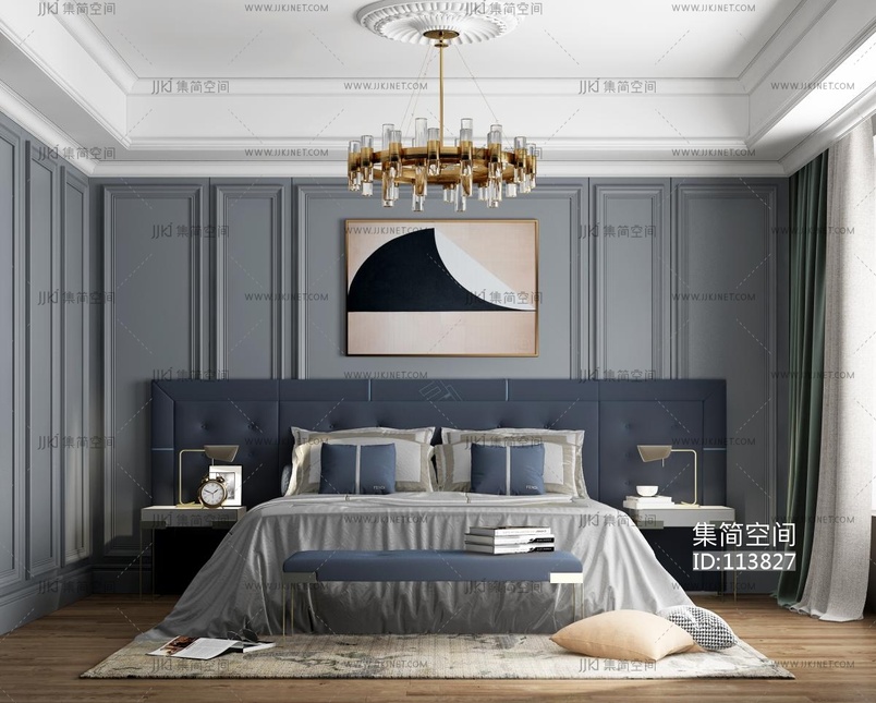 简欧式卧室 3d模型下载 [模型ID:113827]