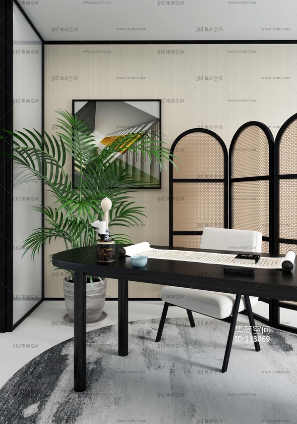 新中式书桌椅子组合 3d模型下载 [模型ID:113869]