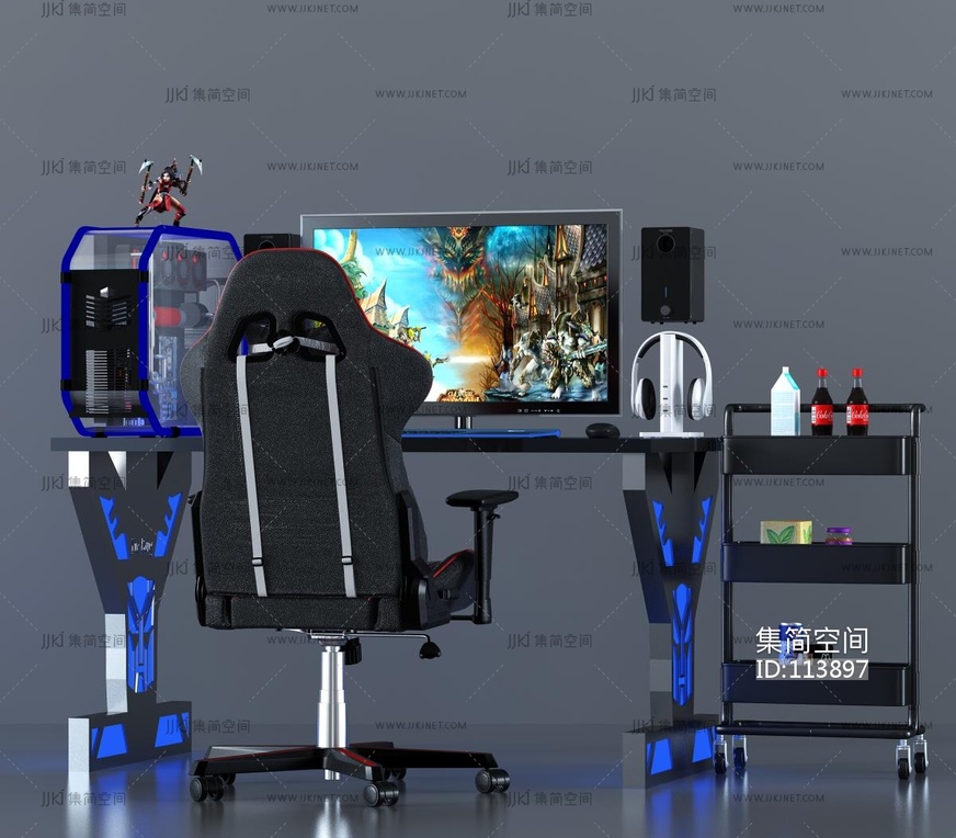 现代儿童房电脑桌椅组合 3d模型下载 [模型ID:113897]