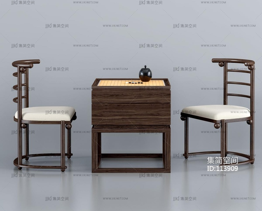 新中式围棋棋牌桌椅组合 3d模型下载 [模型ID:113909]