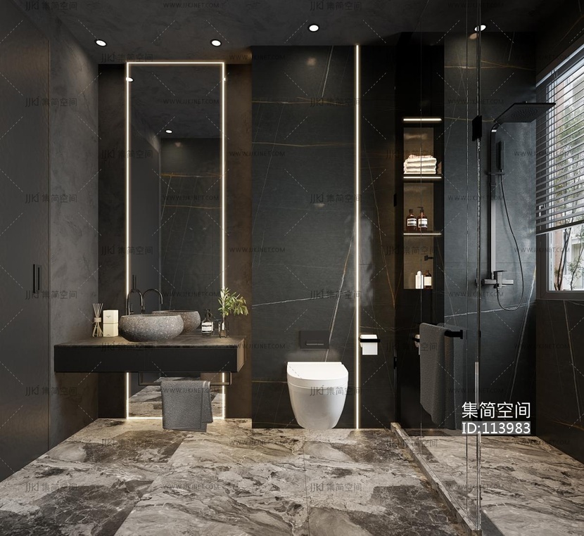 灰色系卫生间3d模型下载