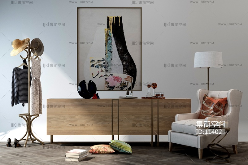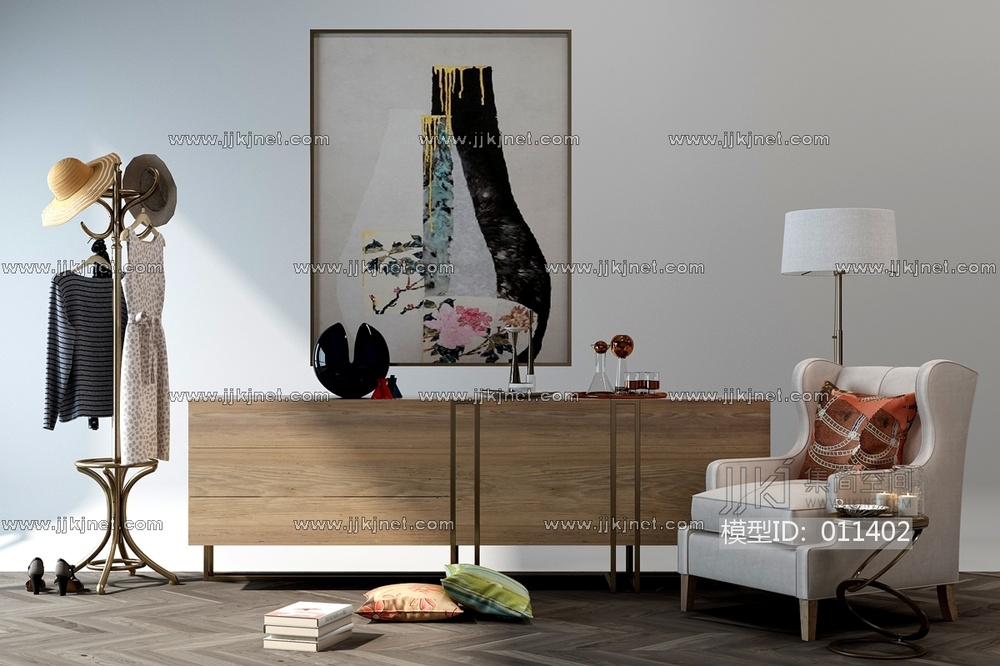 H29-1115现代边柜电视柜休闲沙发衣架 3d模型下载 [模型ID:11402]