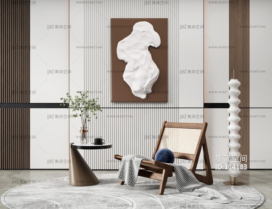 北欧风休闲椅 圆形边几 3d模型下载 [模型ID:114183]