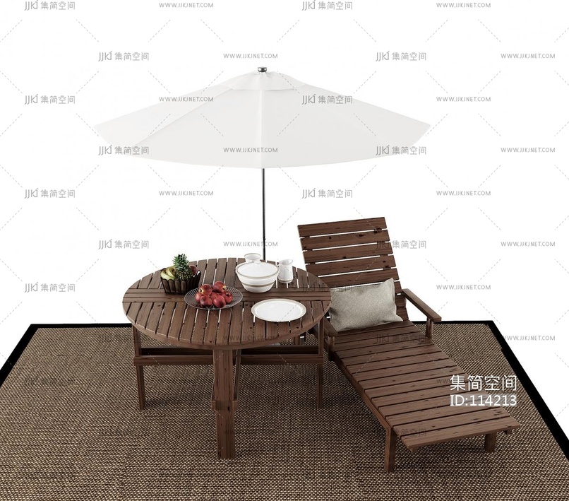 自然风实木户外躺椅户外遮阳棚 3d模型下载 [模型ID:114213]