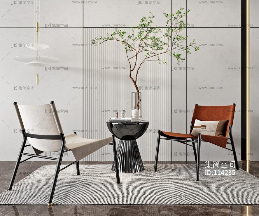 现代单椅休闲椅圆形边几组合 3d模型下载 [模型ID:114235]