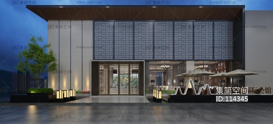 新中式售楼处入口大堂服务太接待台3D模型3d模型下载