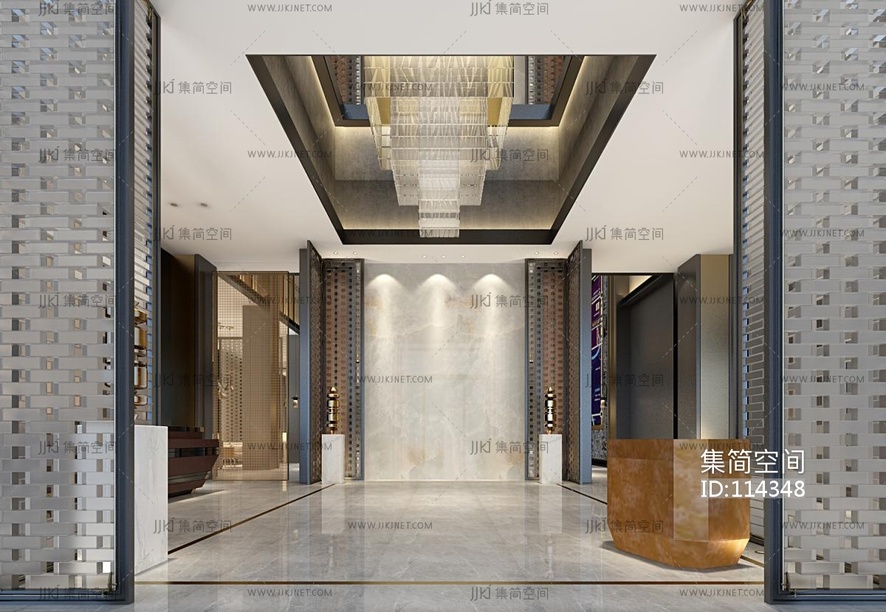 新中式售楼处入口大堂服务太接待台3D模型3d模型下载