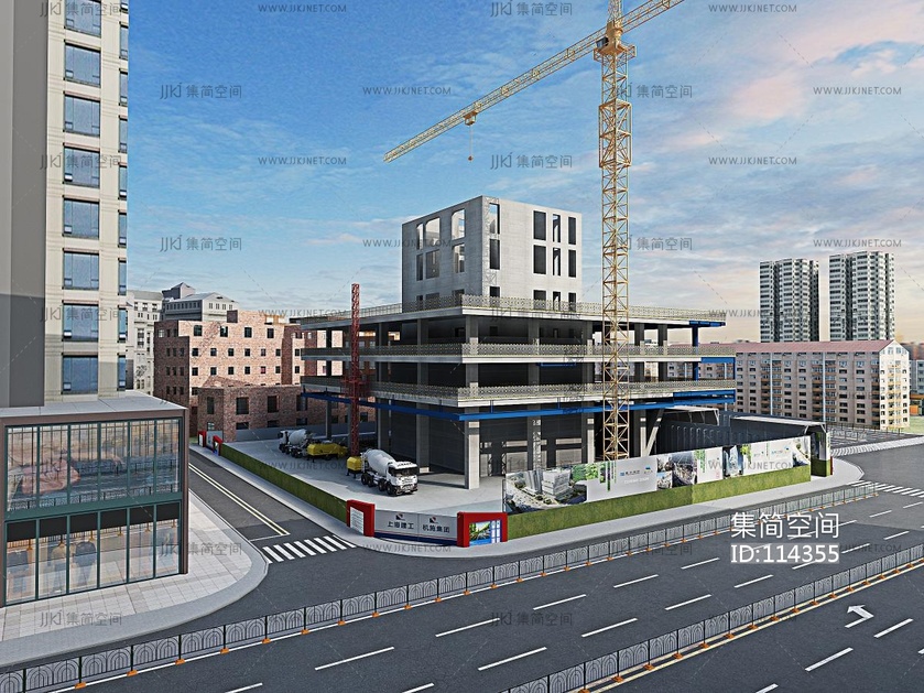 建筑工地、塔吊、搅拌车,楼房 3d模型下载 [模型ID:114355]