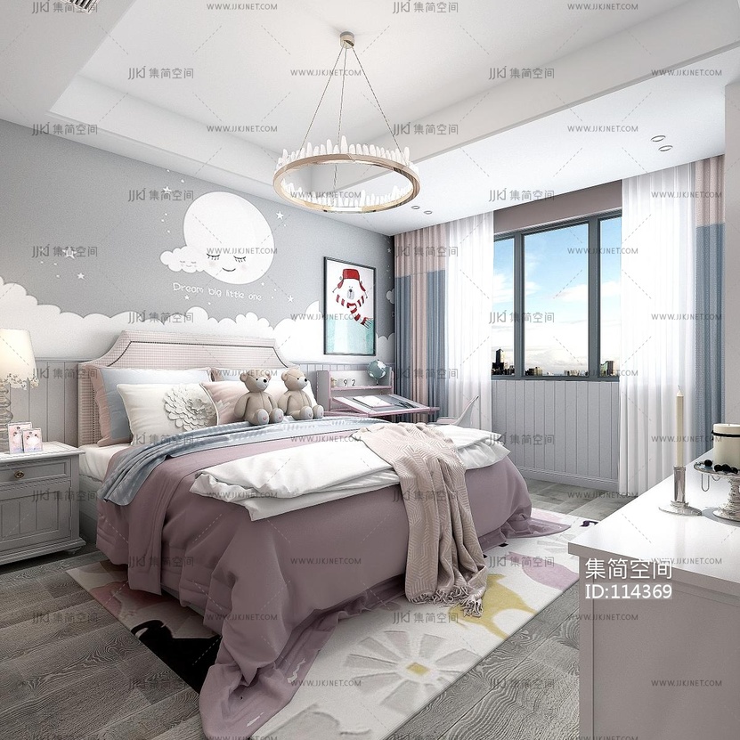 07-现代儿童房,儿童床学习桌-3d模型下载