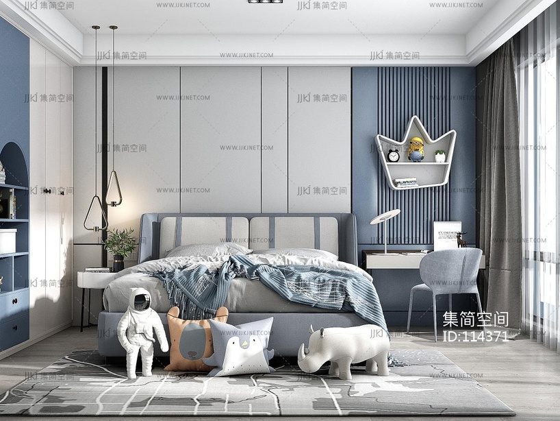 现代儿童房男孩房 3d模型下载 [模型ID:114371]