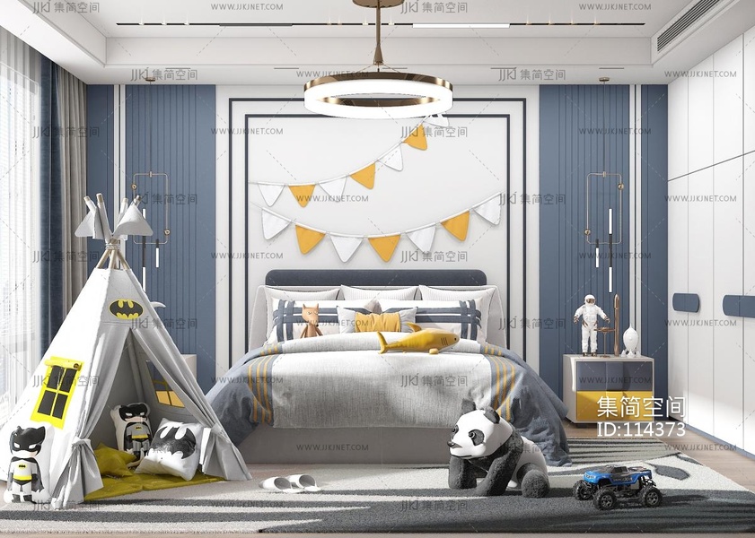 现代儿童房男孩房 3d模型下载 [模型ID:114373]