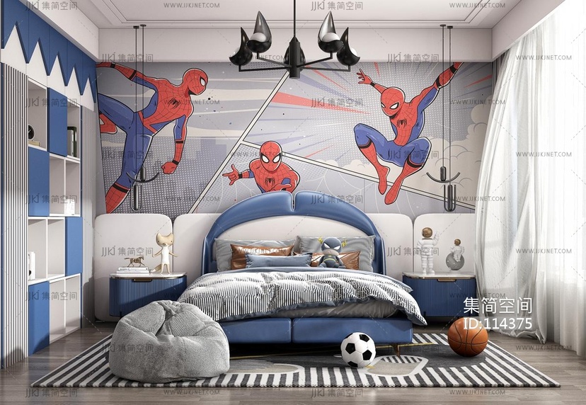 现代儿童房男孩房 3d模型下载 [模型ID:114375]