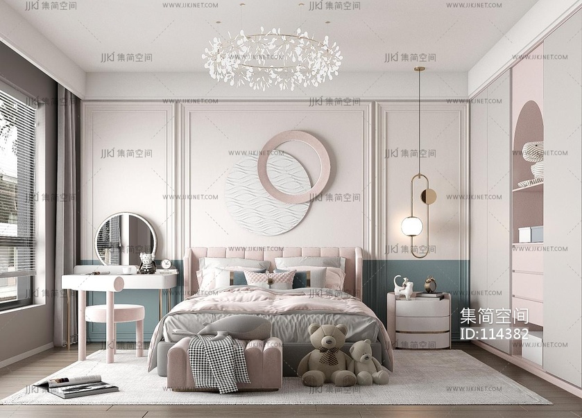 简欧式儿童房女儿房 3d模型下载 [模型ID:114382]