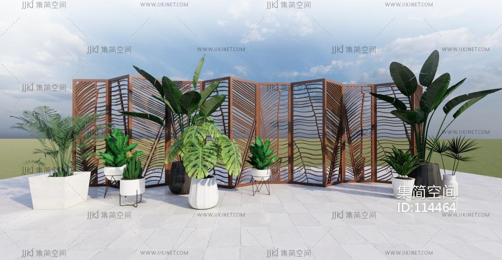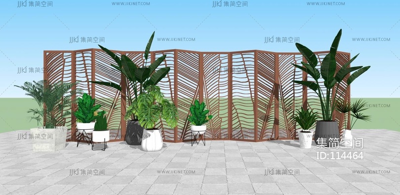 东南亚盆景盆栽,花盆,屏风隔断现代盆栽 美人蕉 (1) su草图模型下载 [模型ID:114464]