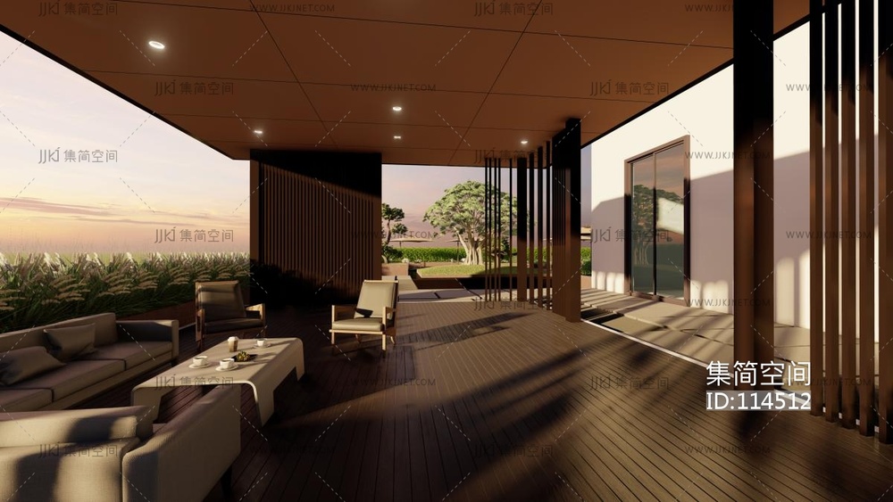 现代景观花园阳台su草图模型下载