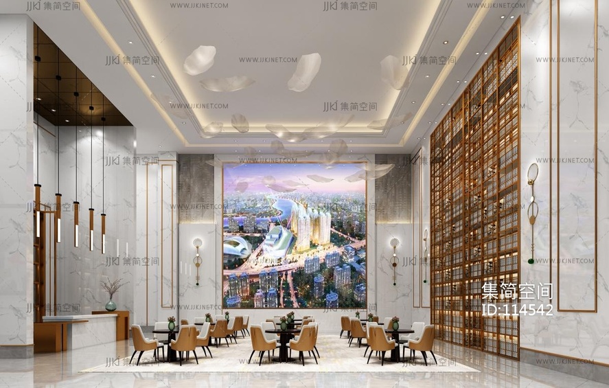新中式售楼处 3d模型下载 [模型ID:114542]