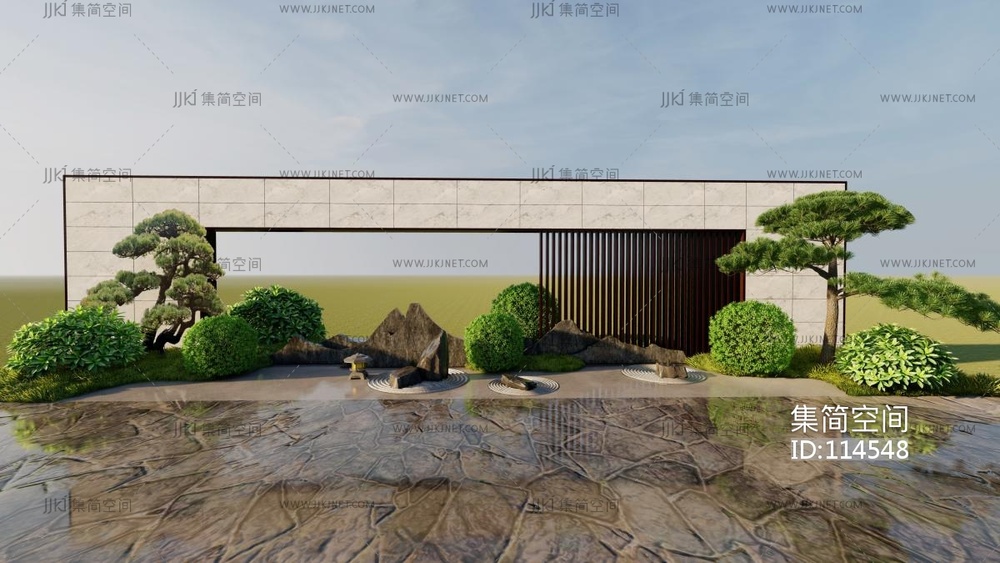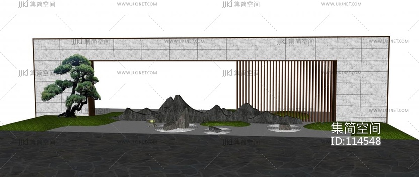 新中式景墙 (2) su草图模型下载 [模型ID:114548]