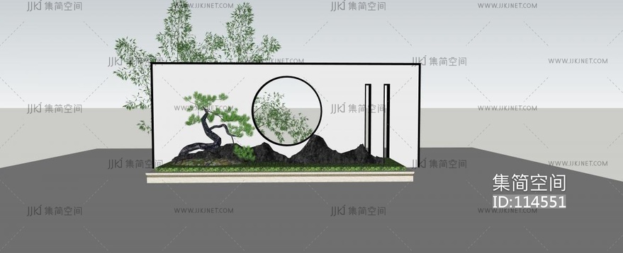 新中式景墙 su草图模型下载 [模型ID:114551]