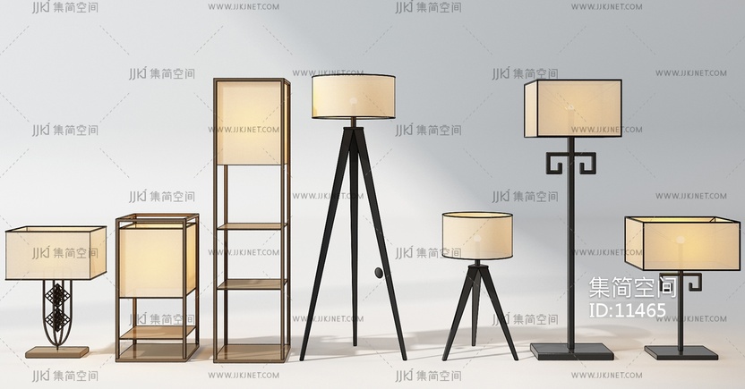 H43-1119新中式落地灯台灯 3d模型下载 [模型ID:11465]