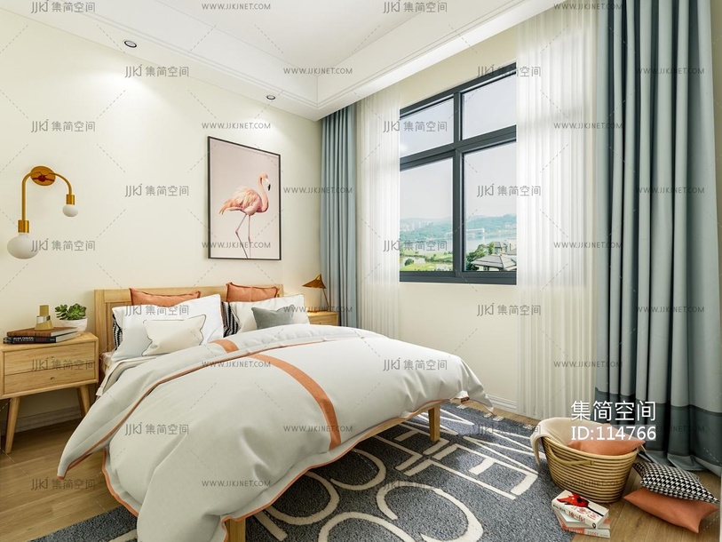 23北欧客卧室 卧室 主卧 次卧 双人床 床头柜 3d模型下载 [模型ID:114766]