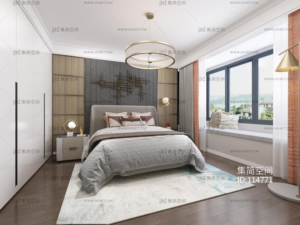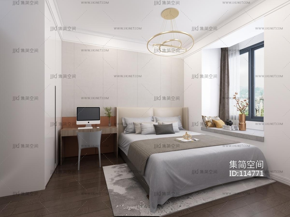 现代简约卧室 3d模型下载 [模型ID:114771]
