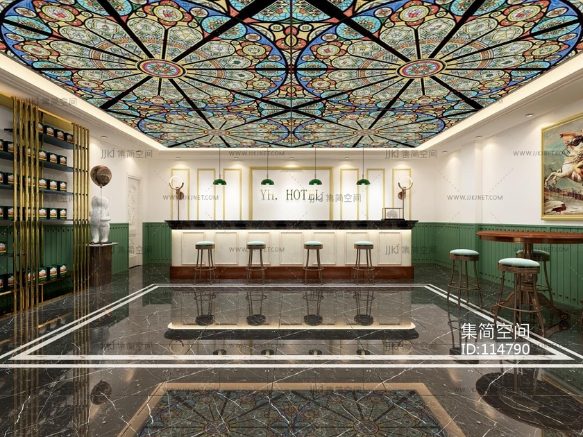 怀旧酒店大厅 3d模型下载 [模型ID:114790]