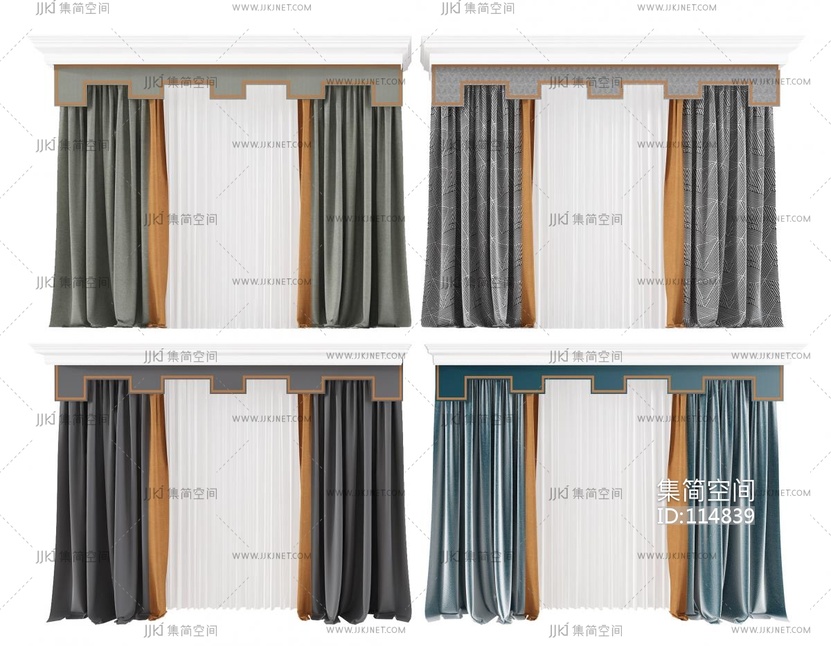 新中式布艺窗帘 3d模型下载 [模型ID:114839]
