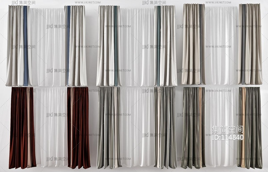 现代通用窗帘_布艺窗帘_纱帘3D模型3d模型下载