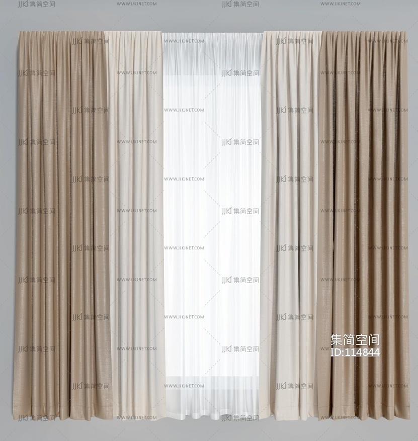 现代简约窗帘垂帘纱帘 3d模型下载 [模型ID:114844]