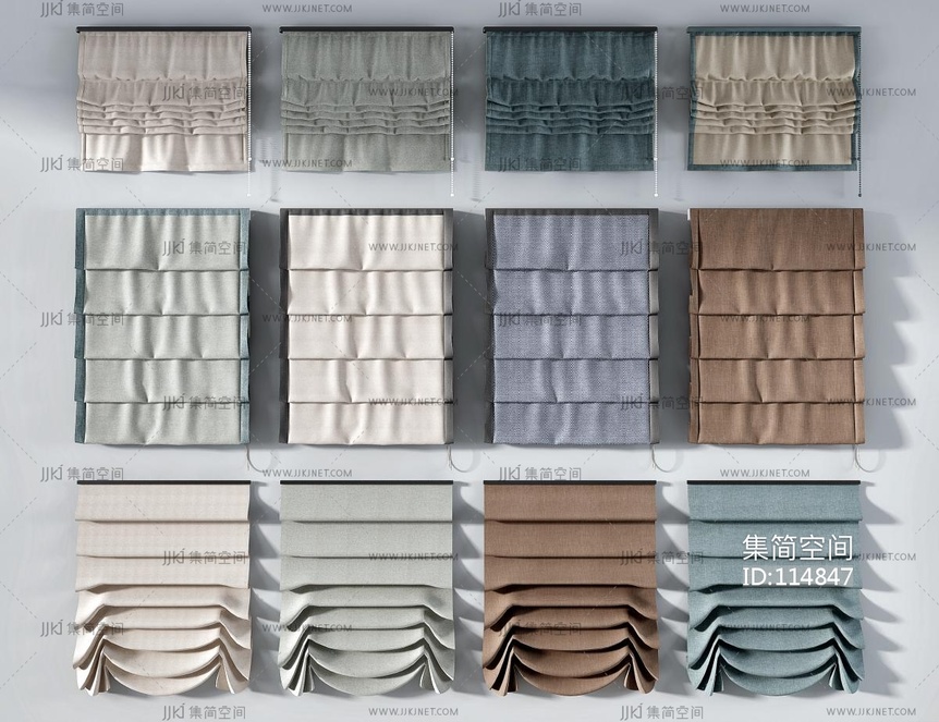 现代布艺窗帘 卷帘 罗马帘 3d模型下载 [模型ID:114847]