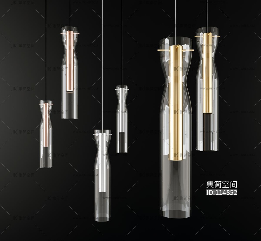 现代金属玻璃吊灯 3d模型下载 [模型ID:114852]
