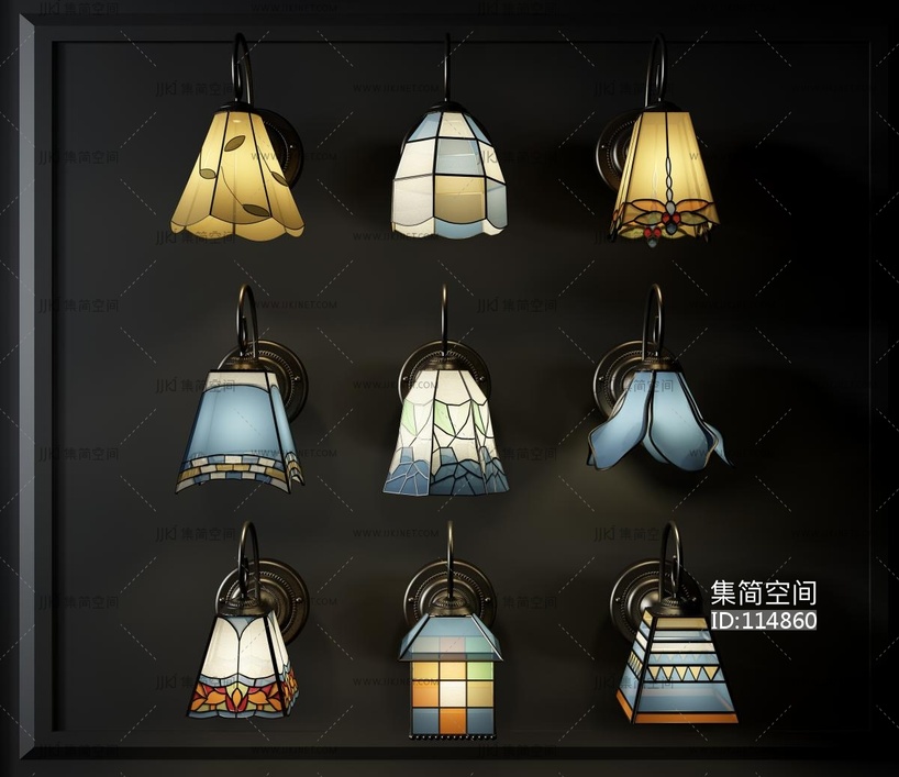 地中海彩绘玻璃壁灯 3d模型下载 [模型ID:114860]