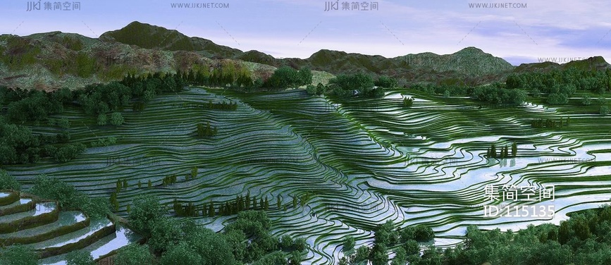 现代山区梯田景观 3d模型下载 [模型ID:115135]