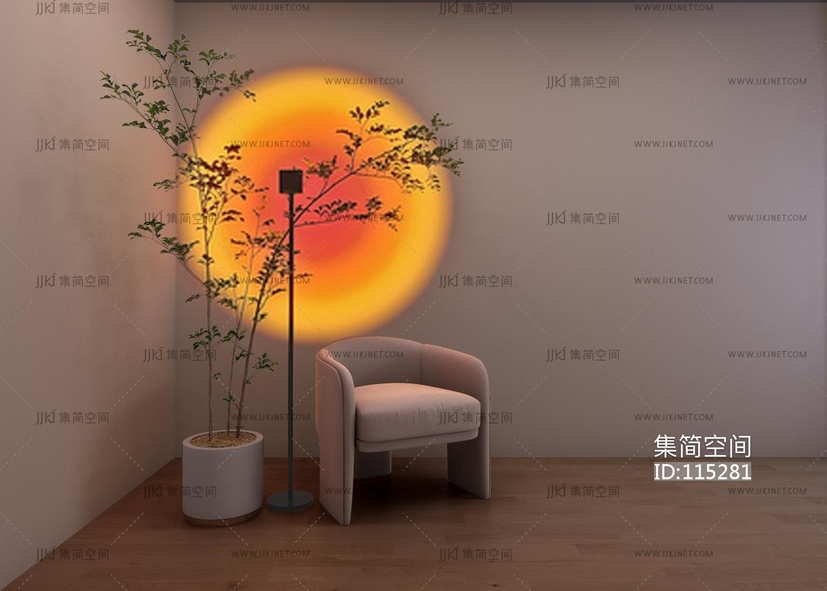现代落地灯、单人沙发 3d模型下载 [模型ID:115281]