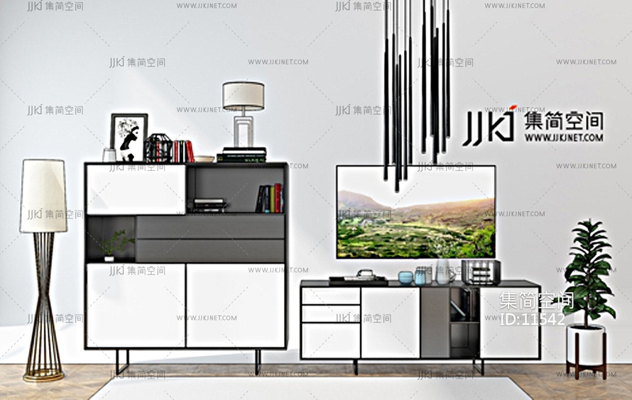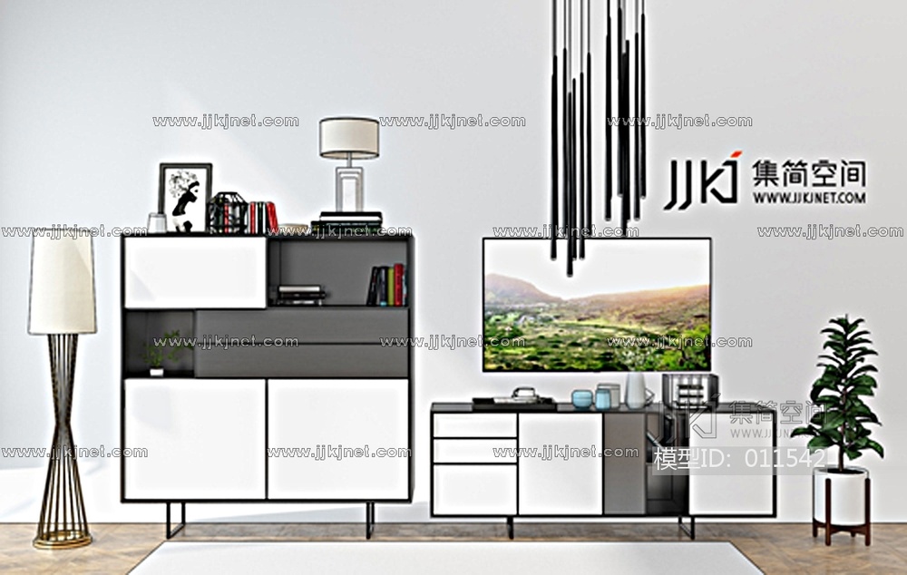 H13-1116北欧黑白电视柜边柜组合 3d模型下载 [模型ID:11542]
