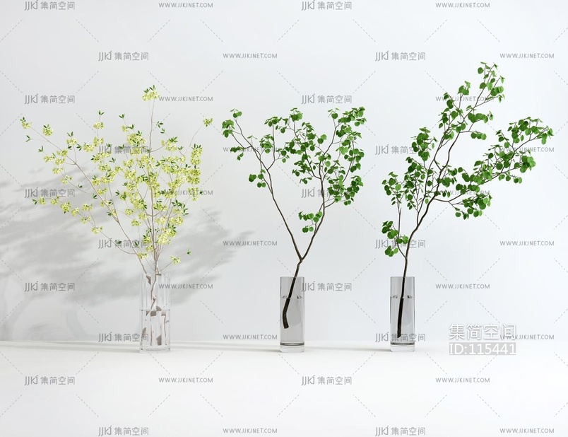 青瓷花盆中的树枝花束,植物插画3D模型cr3d模型下载