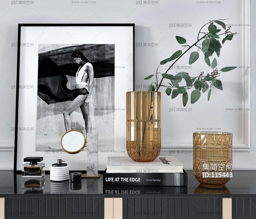 现代简约创意玻璃花瓶 饰品摆件 3d模型下载 [模型ID:115443]
