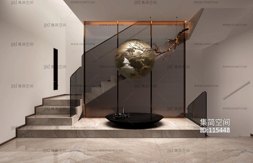 现代楼梯雕塑 玄关小景 (1) 3d模型下载 [模型ID:115448]
