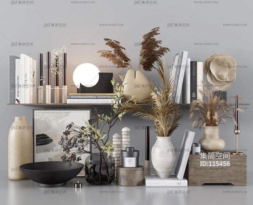 现代饰品摆件_干花_花瓶_装饰品_书籍书本 3d模型下载 [模型ID:115456]