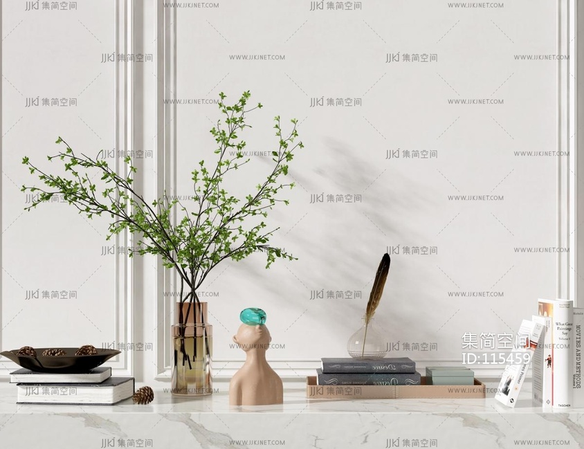 现代托盘摆件苔藓书籍书本酒店用品装饰组合3D模型3d模型下载