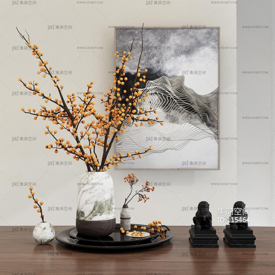 新中式花瓶摆件组合 3d模型下载 [模型ID:115464]