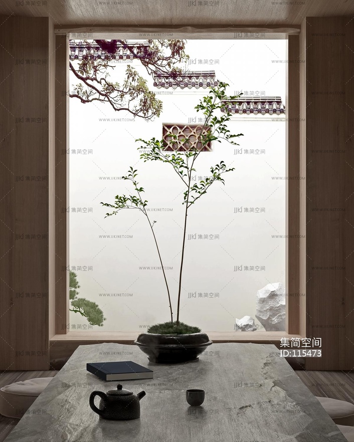 新中式茶壶书籍植物盆栽 3d模型下载 [模型ID:115473]