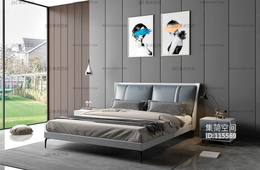 现代皮革双人床 床具 3d模型下载 [模型ID:115569]