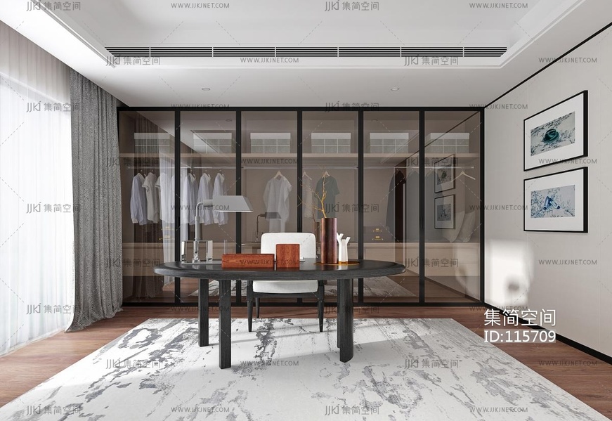 现代书房,书桌椅,书柜亚克力座椅,3d模型下载